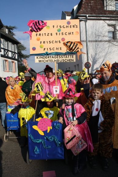 Fastnachtszug in Hattenheim bot phantasievolle Fußgruppen, tolle Motivwagen / Flashmob angetrunkener Jugendlicher