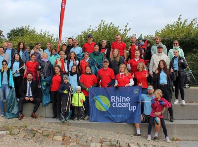 50 Helfer von jung bis alt waren beim Rhine Clean Up-Day in Geisenheim/“Bankenfusion“ für die Umwelt dabei